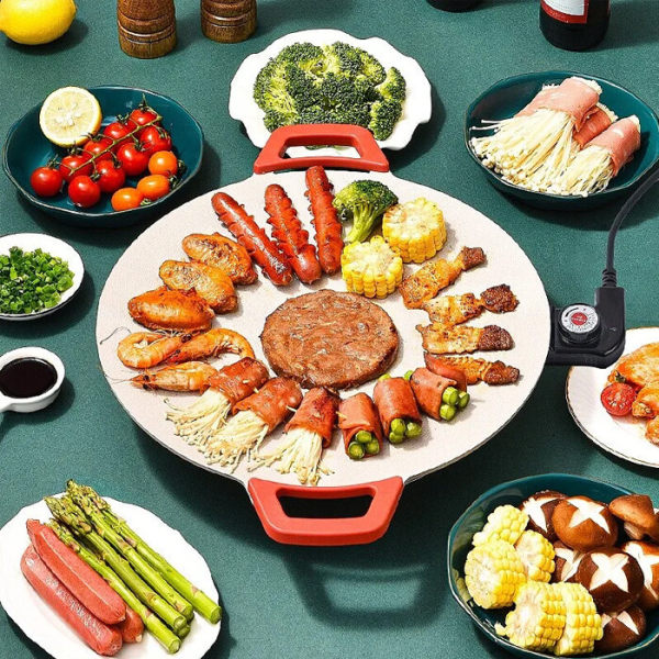 ![Electric grill pan with nonstick iron plate Electric grill pan with nonstick iron plate]()
